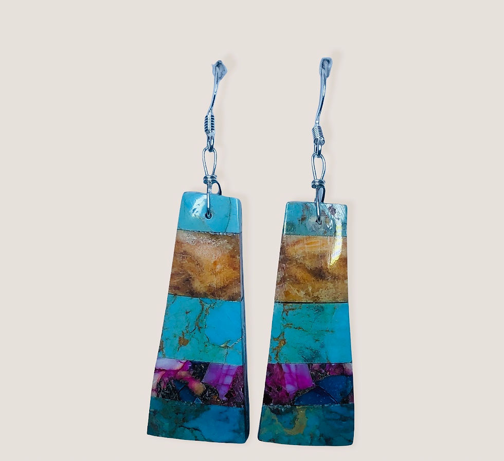 Opalite, Turquoise, Coral, Jet, Pearl Zuni Inlay Feather Earrings
